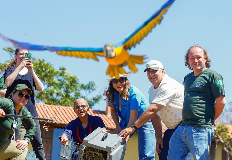 Em uma ação emblemática de conservação da fauna, o Instituto Brasileiro do Meio Ambiente e dos Recursos Naturais Renováveis (Ibama), por meio do Centro de Triagem de Animais Silvestres (Cetas), reintroduziu 42 animais silvestres em seu habitat natural no Cerrado nesta quarta-feira (27/8). A soltura, realizada na Chapada Imperial (DF), contou com a participação da ministra do Meio Ambiente, Marina Silva, e da primeira-dama, Janja Lula da Silva.